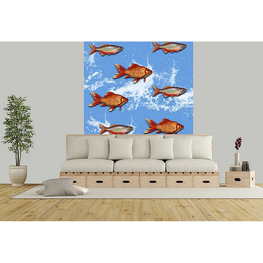 | Nautical with a current flair, this mural features photorealistic orange fish atop a blue and white background. Printed on vinyl coated paper and measures 8-ft 3-in high and 6-ft wide when assembled. Gold Fish Wall Mural comes on 2 panels. Paste is included. Repeat: No Repeat Ideal decor Wall Murals Wall Murals # of Pieces: 2 current Fish Fish |
