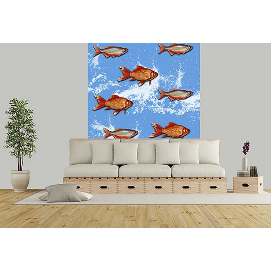 Nautical with a current flair, this mural features photorealistic orange fish atop a blue and white background. Printed on non woven paper and measures 8-ft 3-in high and 6-ft wide when assembled. Gold Fish Wall Mural comes on 2 panels. Paste is included.