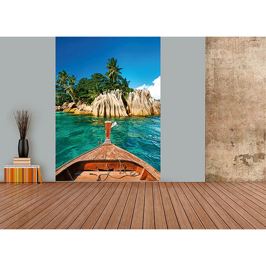 With the vantage point of a wood boat, this mural showcases a tropical island scene. Printed on non woven paper and measures 8-ft 3-in high and 6-ft wide when assembled. St. Pierre Island At Seychelles Wall Mural comes on 2 panels. Paste is included.