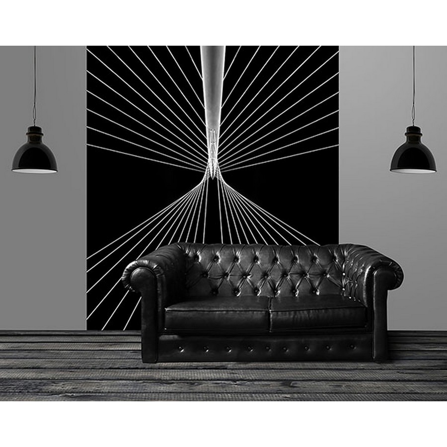 Perfect for the modern home, this wall mural features a three-dimensional string design against a black background. Printed on non woven paper and measures 8-ft 3-in high and 6-ft wide when assembled. 3D Strings Wall Mural comes on 2 panels. Paste is included.