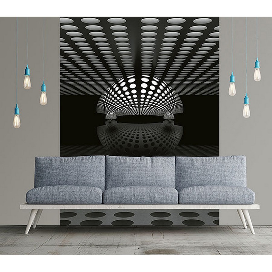 In this futuristic wall mural, a silver sphere is suspended in mid air. Printed on non woven paper and measures 8-ft 3-in high and 6-ft wide when assembled. 3D Sphere Silver Wall Mural comes on 2 panels. Paste is included.