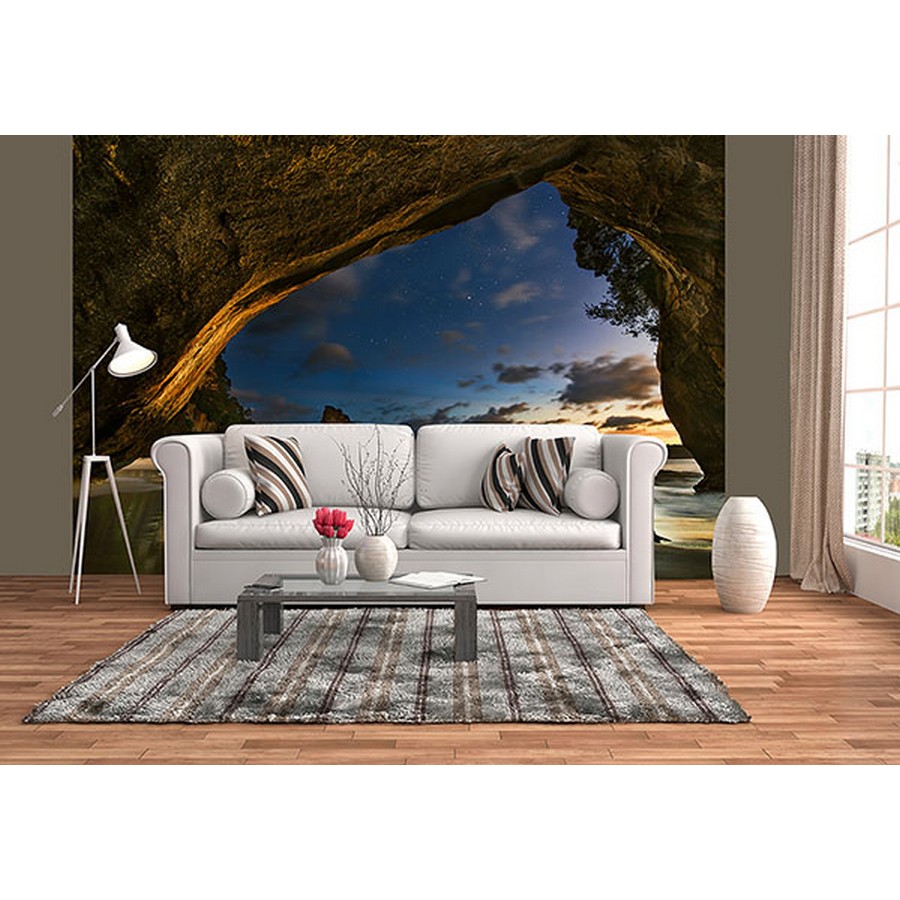 This mural showcases the natural wonder of the New Zealand Cathedral Cove. Printed on non woven paper and measures 8-ft-3-in tall and12-ft wide when assembled. Cathedral Cove In New Zealand Wall Mural comes on 4 panels. Paste is included.