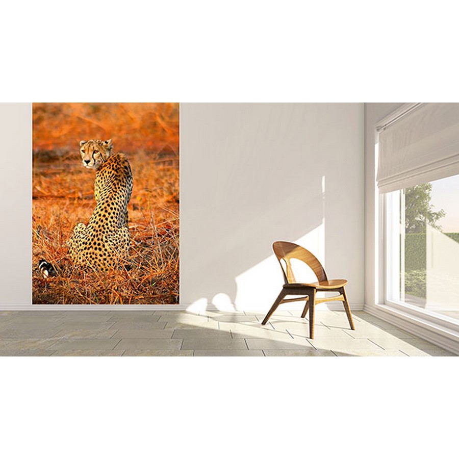 A gorgeous leopard glances over its shoulder in this safari inspired wall mural. Printed on non woven paper and measures 8-ft 3-in high and 6-ft wide when assembled. Leopard Safari Wall Mural comes on 2 panels. Paste is included.