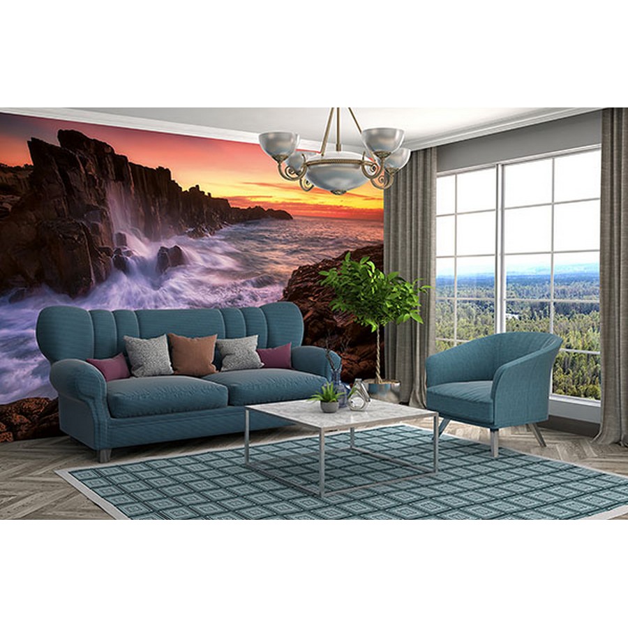 Add serene energy to rooms with this sea cliff and sunset wall mural. Printed on non woven paper and measures 8-ft-3-in tall and12-ft wide when assembled. Sea Cliff Wall Mural comes on 4 panels. Paste is included.