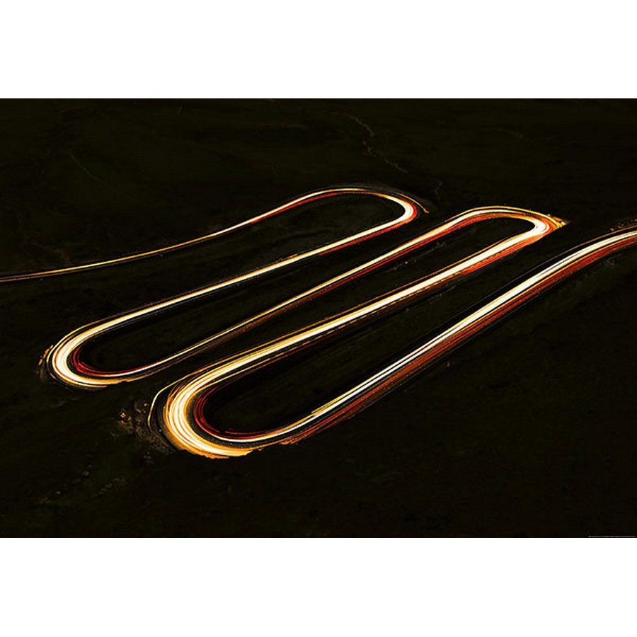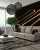 A gold streak of light curls across a black background in this modern mural. Printed on non woven paper and measures 8-ft-3-in tall and12-ft wide when assembled. Light Stripes Wall Mural comes on 4 panels. Paste is included.