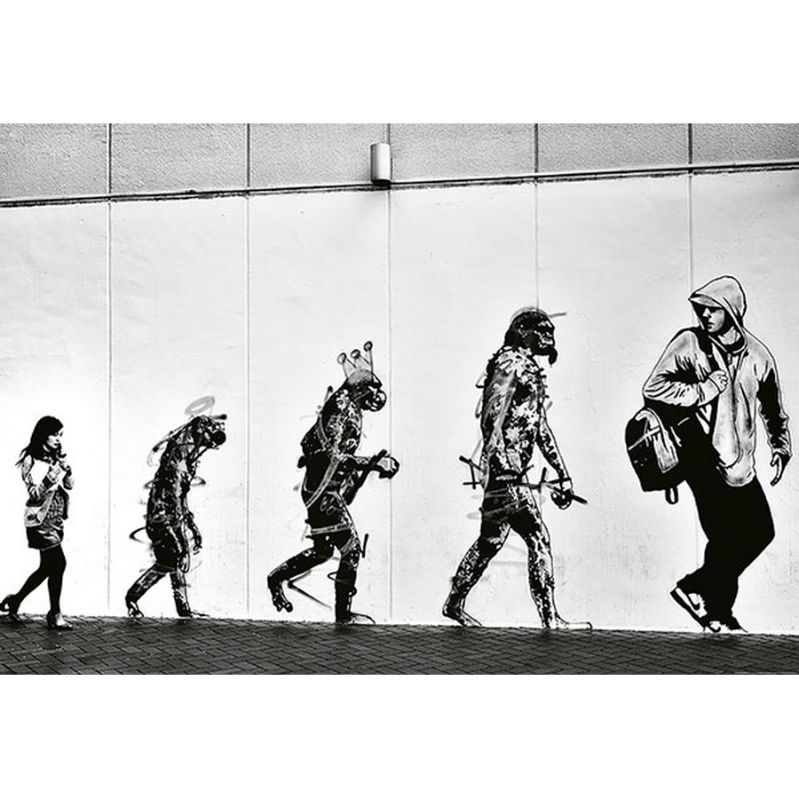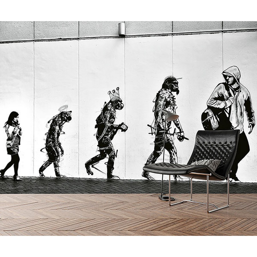 | A pedestrian walks by an urban depiction of evolution mural in this black and white design. Printed on non woven paper and measures 8-ft-3-in tall and12-ft wide when assembled. Street Art Evolution Wall Mural comes on 4 panels. Paste is included. Repeat: No Repeat Ideal decor Wall Murals Wall Murals # of Pieces: 4 current Novelty Novelty |