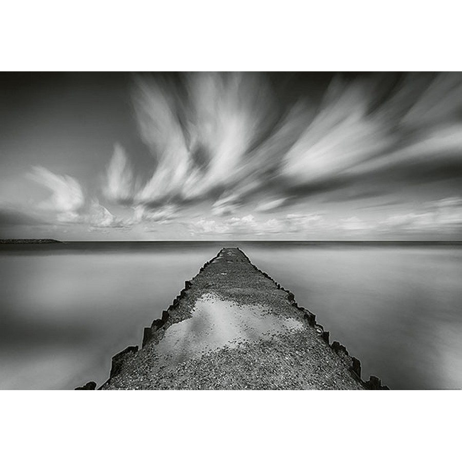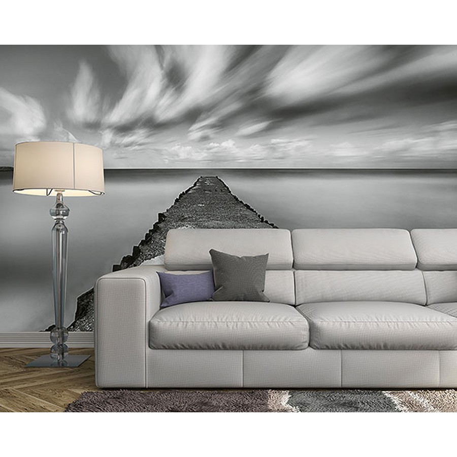 In a grey and white color scheme, this serene wall mural features a rocky pier under a silky sky. Printed on vinyl coated paper and measures 8-ft-3-in tall and12-ft wide when assembled. Landing Stage Silky Water Wall Mural comes on 4 panels. Paste is included.
