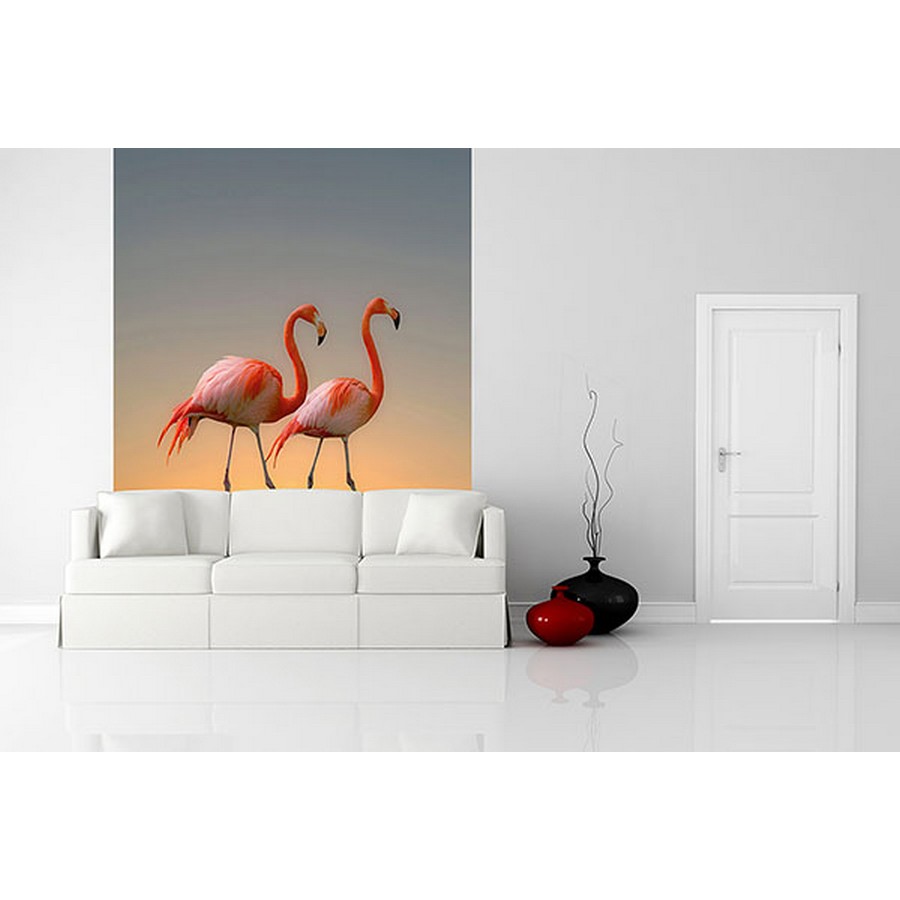 | Flamingos dance across a sun-lit scenery. Printed on vinyl coated paper and measures 8-ft 3-in high and 6-ft wide when assembled. Sunrise Flamingos Wall Mural comes on 2 panels. Paste is included. Repeat: Y Ideal decor Wall Murals Wall Murals # of Pieces: 2 Photographic Birds Birds |