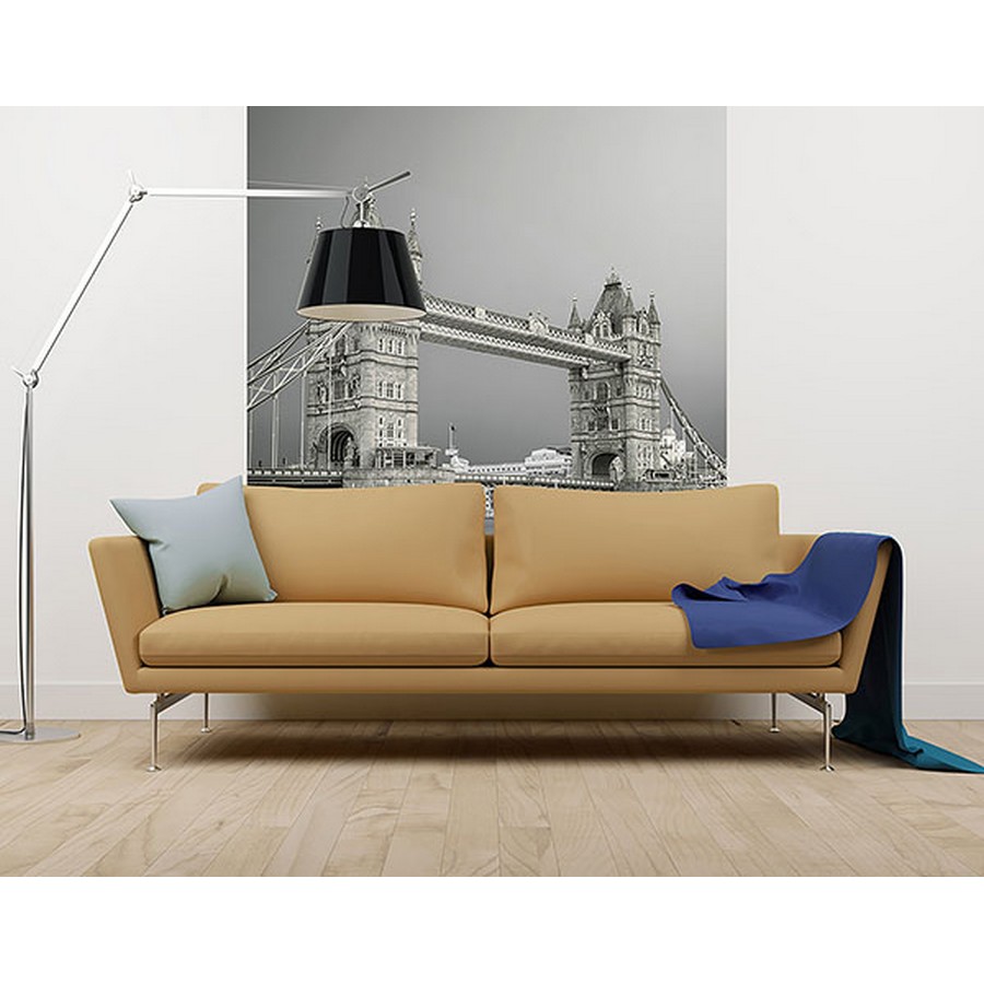 Cross the pond with this black and white London Bridge Wall Mural. Printed on vinyl coated paper and measures 8-ft 3-in high and 6-ft wide when assembled. Tower Bridge London Wall Mural comes on 2 panels. Paste is included.