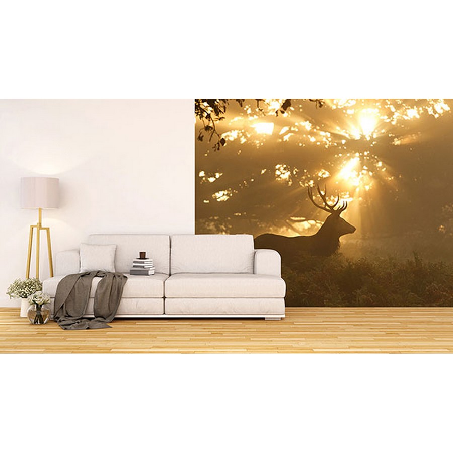 | The sun beams behind a forest terrain and showcases the silhouette of a majestic stag in this wall mural. Printed on non woven paper and measures 8-ft-3-in tall and12-ft wide when assembled. Sunset Stag Wall Mural comes on 4 panels. Paste is included. Repeat: No Repeat Ideal decor Wall Murals Wall Murals # of Pieces: 4 Scenic Deer Deer |