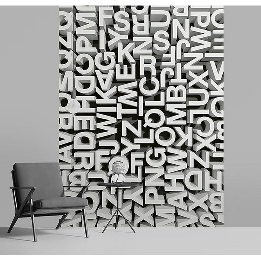 A collection of letters appear to pop off your walls in this current 3D typography design. Printed on non woven paper and measures 8-ft 3-in high and 6-ft wide when assembled. 3D Typography Letters Wall Mural comes on 2 panels. Paste is included.
