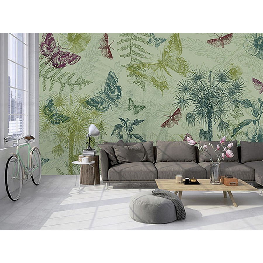 | Butterflies soar among plants in this antique nature scene. Printed on vinyl coated paper and measures 8-ft-3-in tall and12-ft wide when assembled. Butterfly And Plants Collage Wall Mural comes on 4 panels. Paste is included. Repeat: No Repeat Ideal decor Wall Murals Wall Murals # of Pieces: 4 Bohemian Butterflies Butterflies |