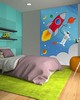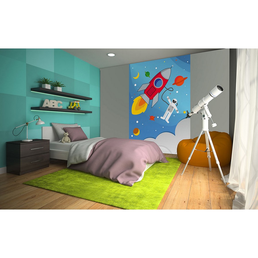 An adventurous astronaut floats among a red room sgroovy and planets in this kids wall mural. Printed on vinyl coated paper and measures 100-in long and 72.4-in-in wide when assembled. Rocket Man Wall Mural comes on 2 panels. Paste is included.