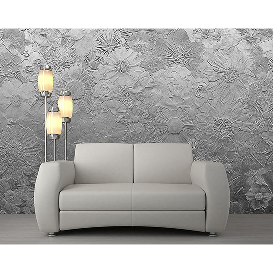 | Silver floral designs dazzle in this botanical mural with a current flair. Printed on non woven paper and measures 8-ft-3-in tall and12-ft wide when assembled. Silver Flowers Wall Mural comes on 4 panels. Paste is included. Repeat: No Repeat Ideal decor Wall Murals Wall Murals # of Pieces: 4 Whimsical Flowers Flowers |