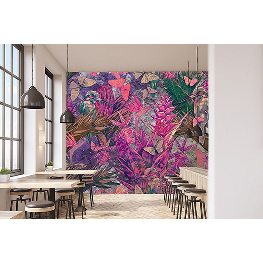 | A vivid botanical garden flourishes amongst hummingbirds in this pink and purple wildlife mural. Printed on non woven paper and measures 8-ft-3-in tall and12-ft wide when assembled. Flowers and Birds Wall Mural comes on 4 panels. Paste is included. Repeat: No Repeat Ideal decor Wall Murals Wall Murals # of Pieces: 4 Bohemian Flowers Flowers |