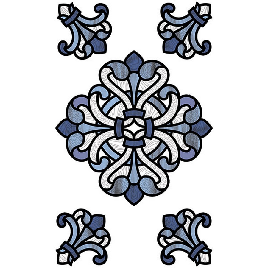 | Give your window a whole new look with this stained glass applique set. The easy-to-install design has a medley of gorgeous blue shades. Blue Medici Stained Glass Decal contains 5 pieces on 1 sheet that measure 9 x 15 inches. Repeat: No Repeat InHome Stained Glass Stained Glass # of Pieces: 5 current Geometric Geometric |