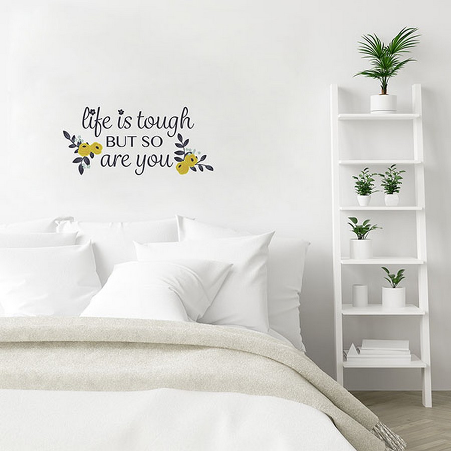 | Give yourself the strength each day to tackle any obstacle with this inspiring wall quote that reads, Life is Tough but So Are You. With budding yellow flowers framing the cursive font, this decal is both gorgeous and aspirational. You Are Tough Wall Quote Decals contains 7 pieces on 2 sheets that measure 17.25 x 9.75 inches. This product measures 14-in by 28-in when assembled when assembled. Repeat: No Repeat WallPops Wall Art Kits Wall Quotes # of Pieces: 7 current Flowers Graphics |
