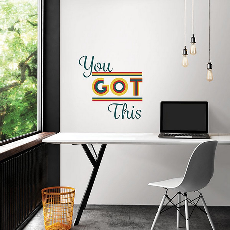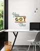 | Start each morning off on the right foot with this inspirational quote that reads, You Got This. Hang this reinforcing and colorful mantra where you will see it every day. You Got This Wall Quote Decals contains 5 pieces on 2 sheets that measure 17.25 x 9.75 inches. This product measures 22-in by 22-in when assembled when assembled. Repeat: No Repeat WallPops Wall Art Kits Wall Quotes # of Pieces: 5 current Novelty Graphics |