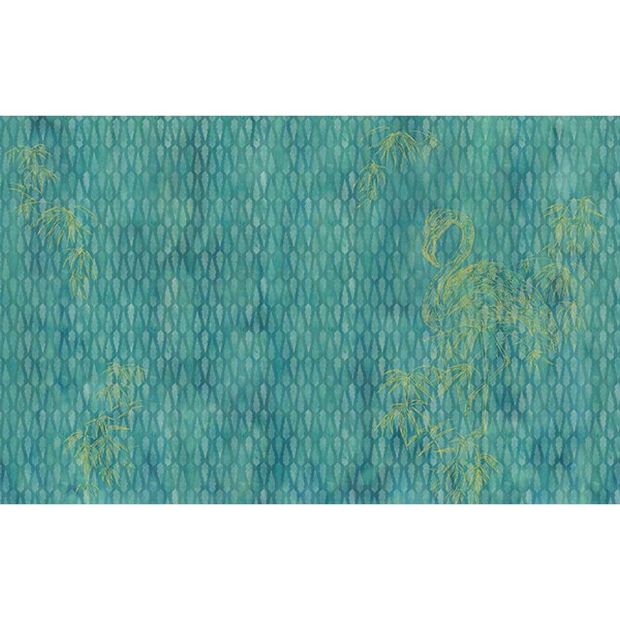 Hosted on a lovely turquoise backdrop a gold outline of a wild flamingo emerges with a tropical flair. Printed on strippable non woven material and measures 8.2-ft by 13.1-ft when assembled. Turqouise Flamingo Wall Mural comes on 4 panels.