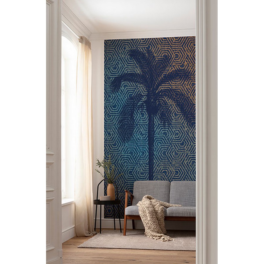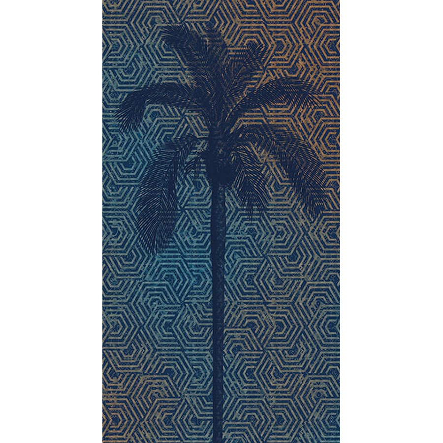 | A blue octagonal geometric wall mural featuring a navy palm tree silhouette. Printed on strippable non woven material and measures 9.2-ft by 4.9-ft when assembled. Palm Tree Silhouette Wall Mural comes on 3 panels. Repeat: No Repeat Komar Wall Murals Wall Murals # of Pieces: 3 Tropical Trees Nature |