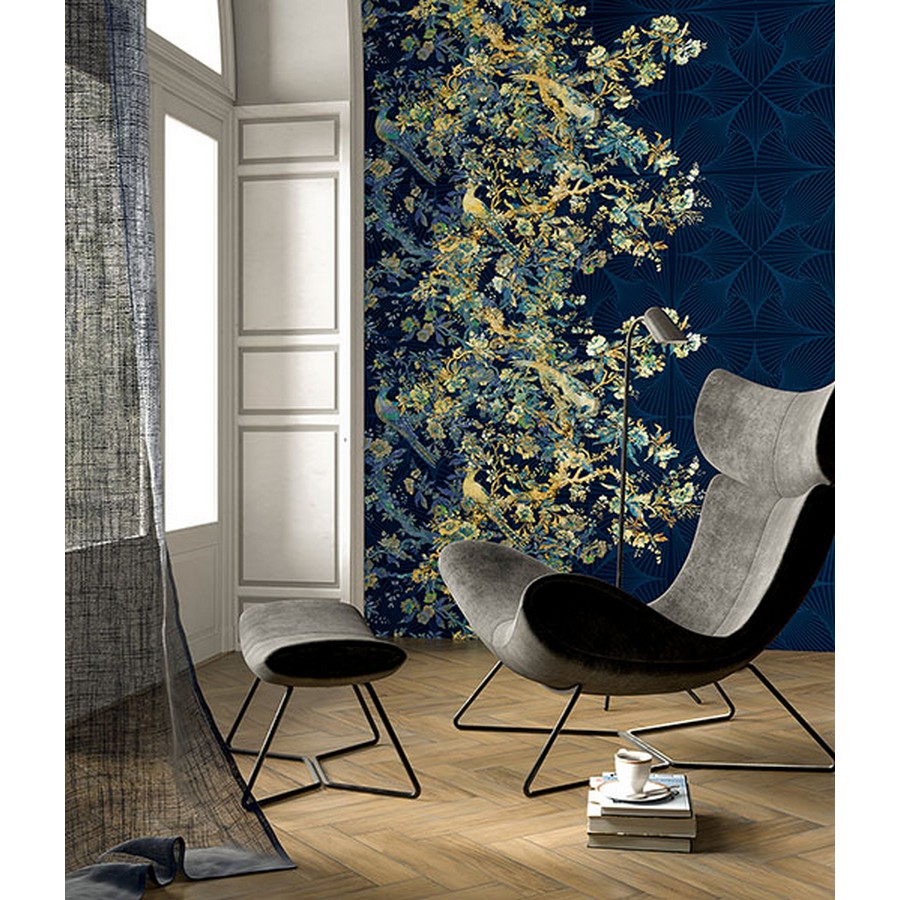 | A stunning yellow chinoiserie mural with a navy blue backdrop. Printed on strippable non woven material and measures 9.2-ft by 6.6-ft when assembled. Navy Chinoserie Wall Mural comes on 4 panels. Repeat: No Repeat Komar Wall Murals Wall Murals # of Pieces: 4 Vintage Flowers Nature |