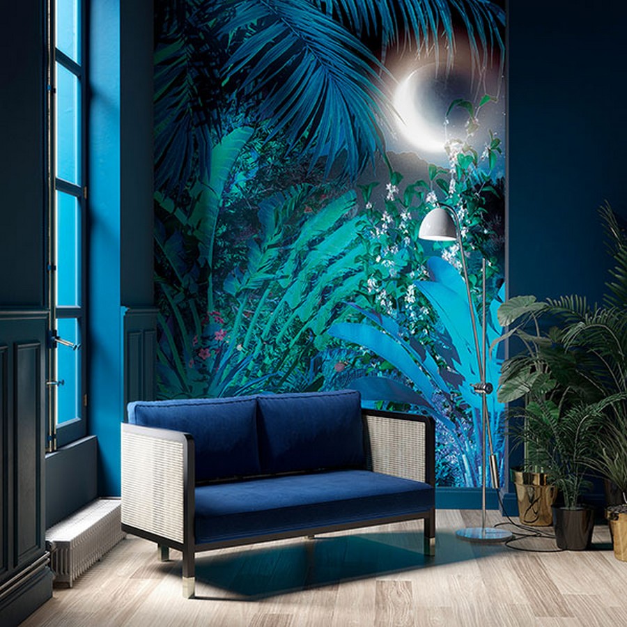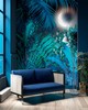 Neon blue plants glow in this moonlit sky mural. Printed on strippable non woven material and measures 9.2-ft by 6.6-ft when assembled. Neon Jungle Wall Mural comes on 4 panels.