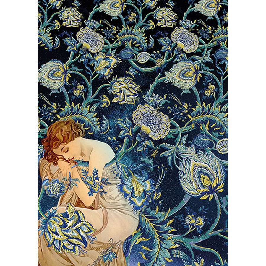| Blue plants curl about a sleeping woman in this embroidered effect mural. Printed on strippable non woven material and measures 9.2-ft by 6.6-ft when assembled. Femme d'Or Wall Mural comes on 4 panels. Repeat: No Repeat Komar Wall Murals Wall Murals # of Pieces: 4 Vintage Novelty Graphics |