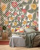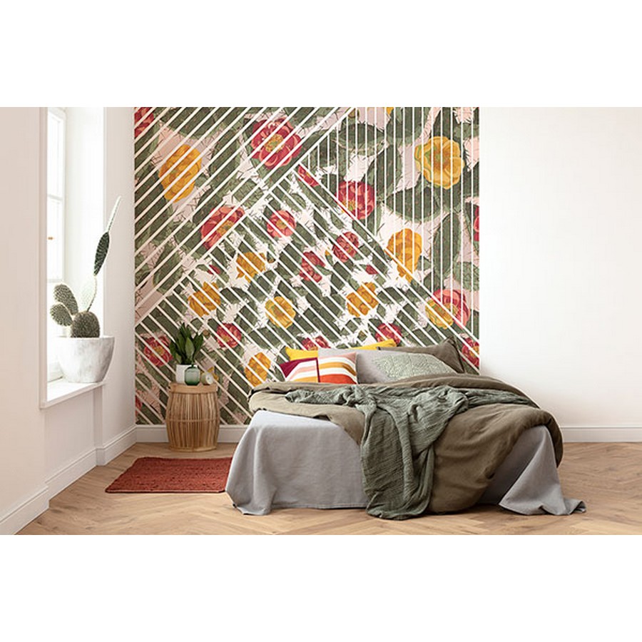Stripped geometrics sit atop a delicate mustard and pink floral backdrop in this eclectic wall mural. Printed on strippable non woven material and measures 9.2-ft by 9.8-ft when assembled. Cactus Wall Mural comes on 6 panels.