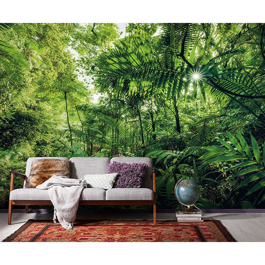 Overcome with luscious foliage, this tropical wall mural will transport you to a tropical jungle. Printed on strippable non woven material and measures 8.2-ft by 13.1-ft when assembled. Into The Jungle Wall Mural comes on 4 panels.
