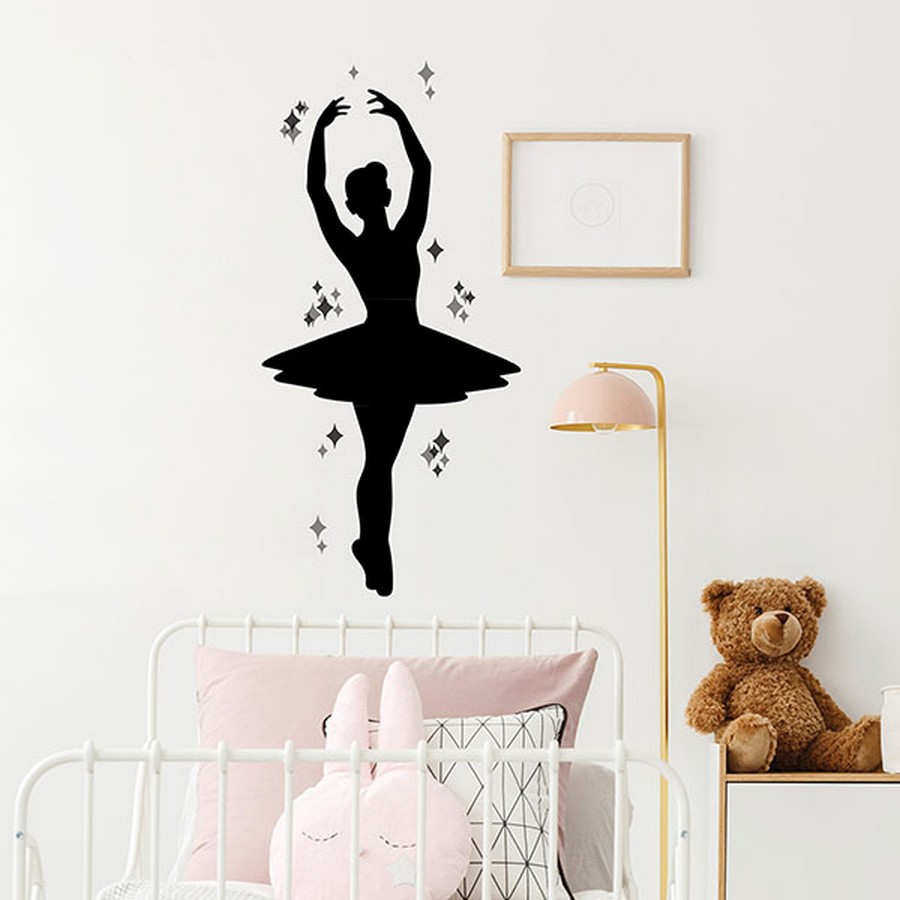 | With a silhouette design, this ballerina wall art kit has a current touch. Clusters of diamonds emphasize its whimsical and magical look. En Pointe Wall Art Kit contains 12 pieces on 2 sheets that measure 39 x 17.25 inches. This product measures 66-in x 30-in when assembled. Repeat: No Repeat WallPops Wall Art Kits Wall Art Kits # of Pieces: 12 Kids Novelty Fairy Tales & Fantasy |