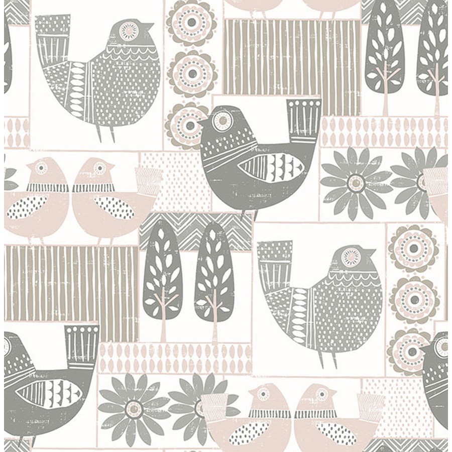 | Playful birds mingle amongst trees and flowers in this lively patchwork design. Its color scheme of grey, cream and taupe shades adds a hip touch to its Scandinavian style. Spring hipkens Peel and Stick Wallpaper comes on one roll that measures 20.5 inches wide by 18 feet long. Repeat: 21 NuWallpaper Peel & Stick Wallpaper Peel & Stick Wallpaper # of Pieces: 1 Scandinavian Birds Animals |