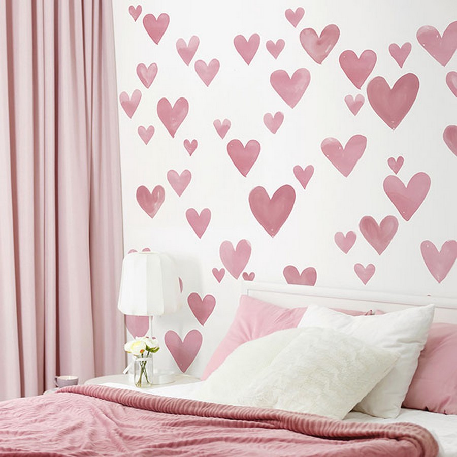 | Spread the love with this charming wall art kit! Soft pink hearts of various sizes are complete with brushstroke details for a watercolor effect. Mi Amor Wall Art Kit contains 58 pieces on 2 sheets that measure 17.25 x 39 inches. This product measures 60-in x 60-in when assembled. Repeat: No Repeat WallPops Wall Art Kits Wall Art Kits # of Pieces: 58 Whimsical Novelty Love Kids Wallpaper |