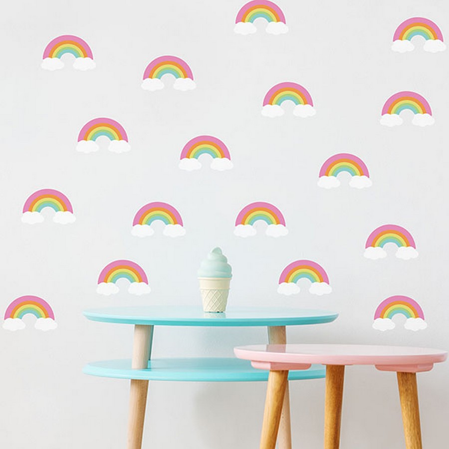 | Transform rooms into an enchanting fairy tale with these miniature rainbow decals. The red, yellow and green shades will add a splash of color to walls. Fantastic Rainbow Wall Art Kit contains 92 pieces on 2 sheets that measure 17.25 x 39 inches. This product measures 60-in x 60-in when assembled. Repeat: No Repeat WallPops Wall Art Kits Wall Art Kits # of Pieces: 92 Whimsical Graphics Fairy Tales & Fantasy Kids Wallpaper |
