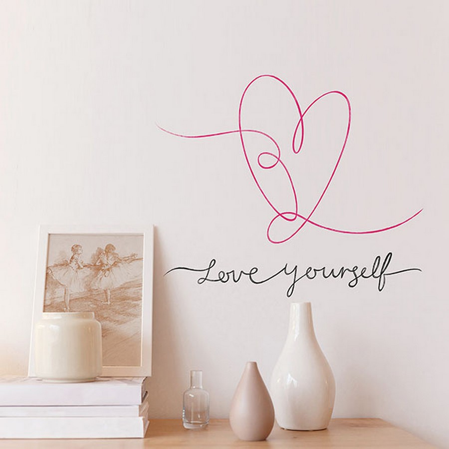 | A whimsical pink heart with the quote, Love Yourself, has a heart-warming sentiment. With its simple design and empowering message, place this wall quote in any room for an instant pick-me-up. Love Yourself Wall Art Kit contains 3 pieces on 1 sheet that measures 17.25 x 24 inches. This product measures 21-in x 25-in when assembled. Repeat: No Repeat WallPops Wall Art Kits Wall Art Kits # of Pieces: 3 Kids Novelty Graphics Words And Phrases |