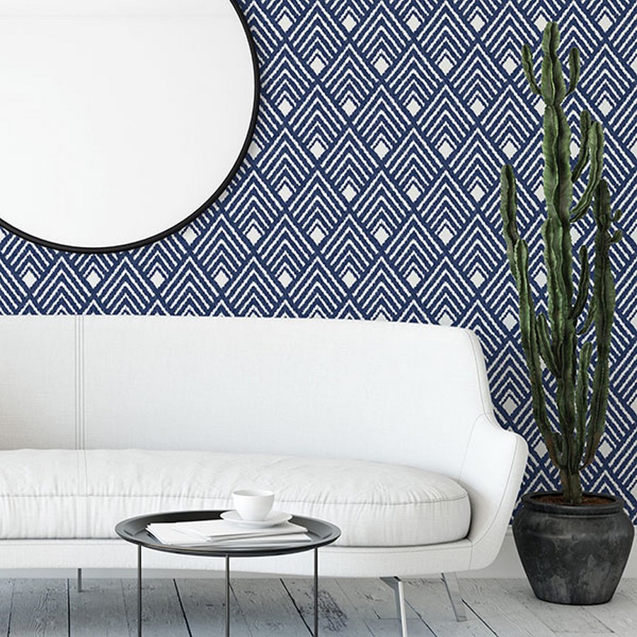 trendy diamonds scale walls for a hip and new look in this self adhesive wallpaper. Raised inks add a dimensional touch to its classic indigo and white color scheme. Indigo Arden Self Adhesive Wallpaper comes on one roll that measures 20.5 inches wide by 18 feet long.
