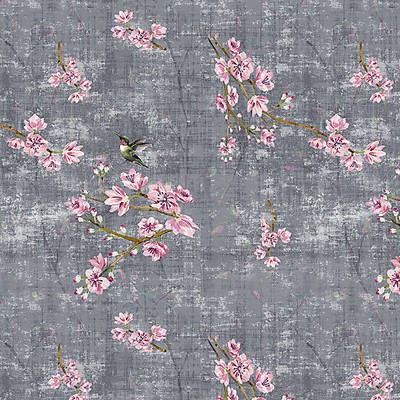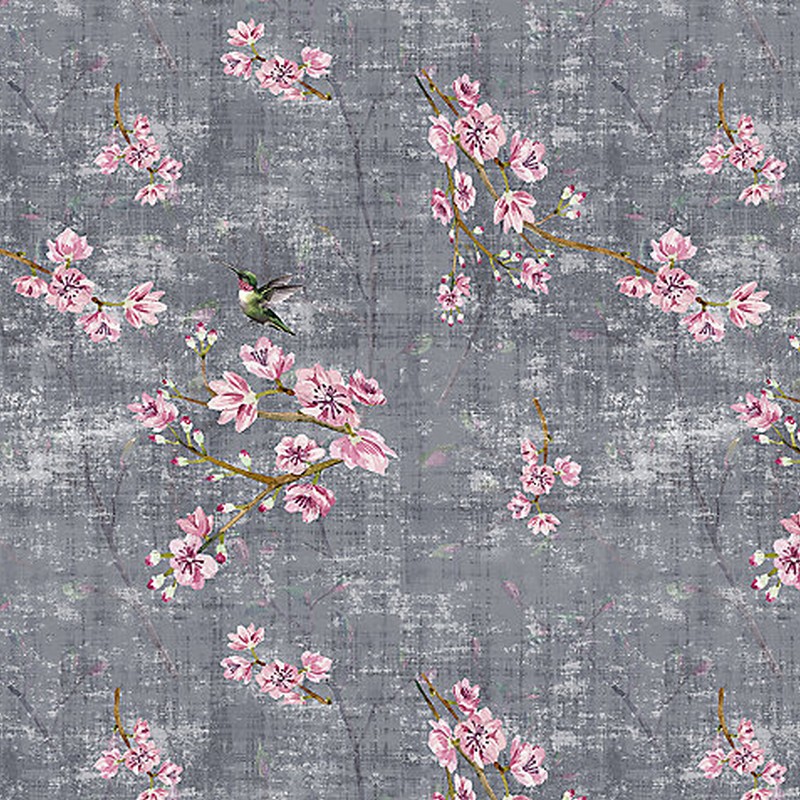 | LARGE Scale DARK GREY / CHARCOAL BLOSSOM CHINOISERIE Nicolette Mayer Floral Linen Fabric Oriental Fabric |