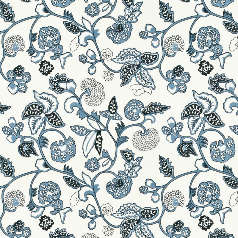 Stout Fabric Jacobean Floral Fabric Traditional Floral Fabric Rainbow Library Chambray Shoreline