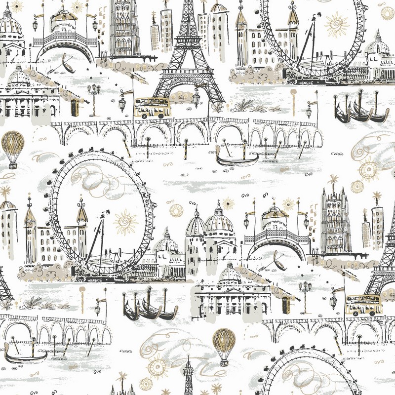 | A visual travelogue featuring the London Eye, the Eiffel Tower, Venetian gondolas and so much more, Novelty Euro Scenic Wallpaper is a vibrant invitation to enjoy our exciting globe. Prepasted - Washable - Strippable Packaged and sold as a double roll Repeat: 24 in. Match: Straight A Perfect World |