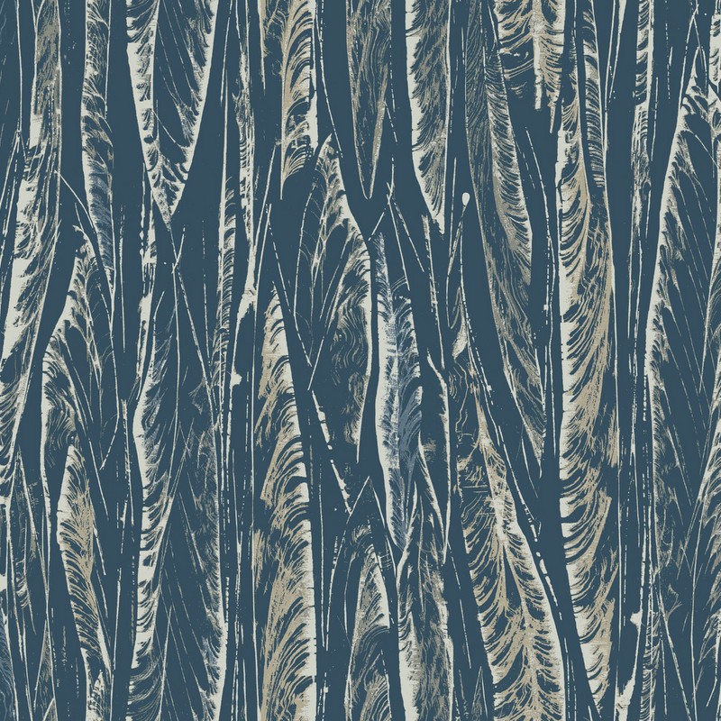 | Large tropical leaves form a peaceful screen of foliage in a vertical pattern that has the calming influence of a natural forested setting; this is Native Leaves Wallpaper. Unpasted - Washable - Strippable Packaged and sold as a double roll Repeat: 25.25 in Match: Drop Antonina Vella Elegant Earth |