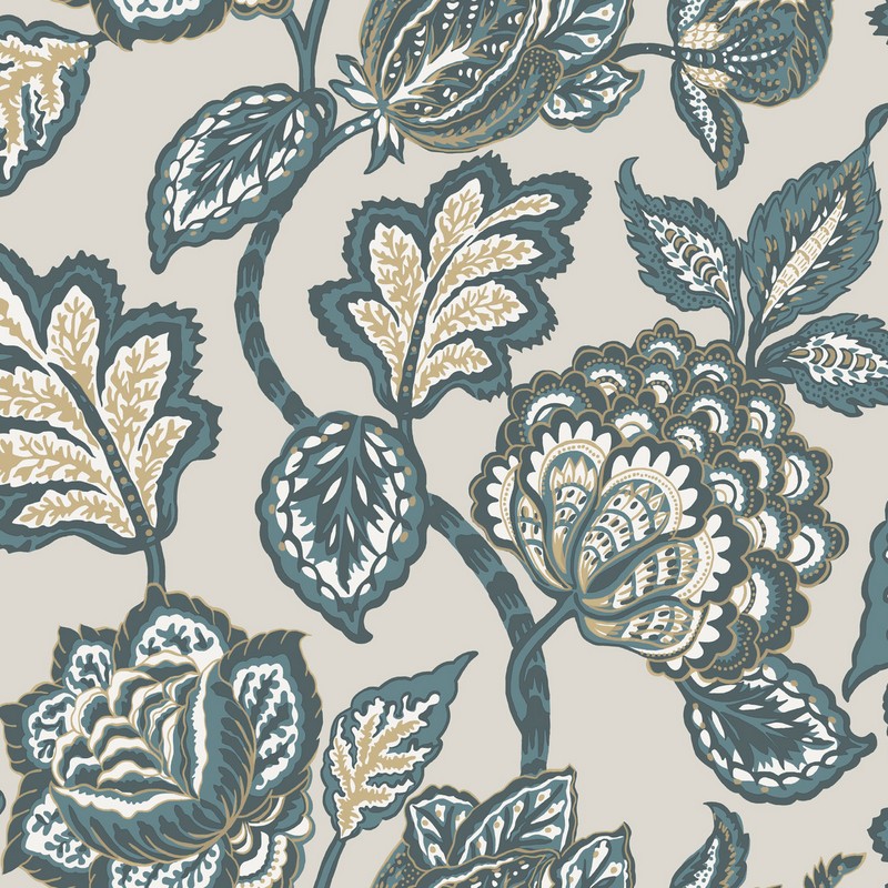 York Wallcovering Midsummer Jacobean Wallpaper Taupe/Turq