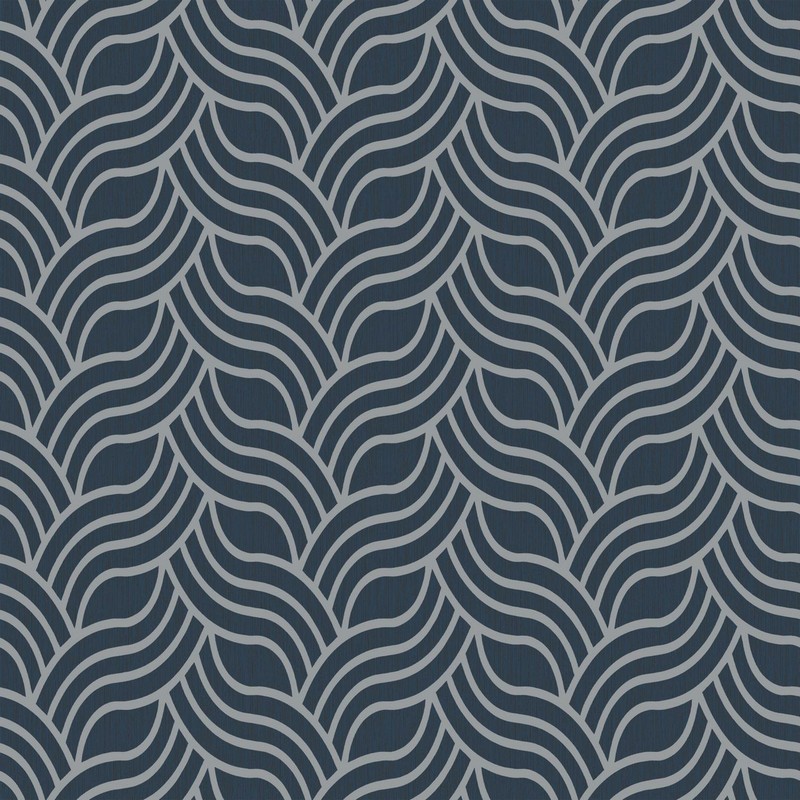 York Wallcovering Interlocking Geo Wallpaper deep greyish blue metallic silver