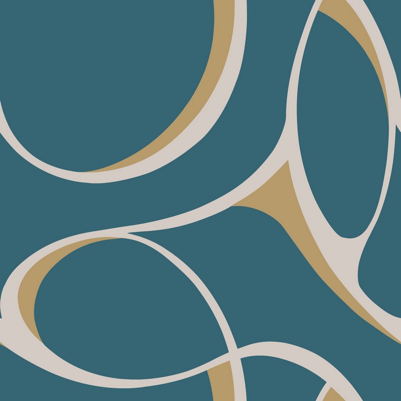 York Wallcovering Elliptical Wallpaper teal cream bright metallic gold