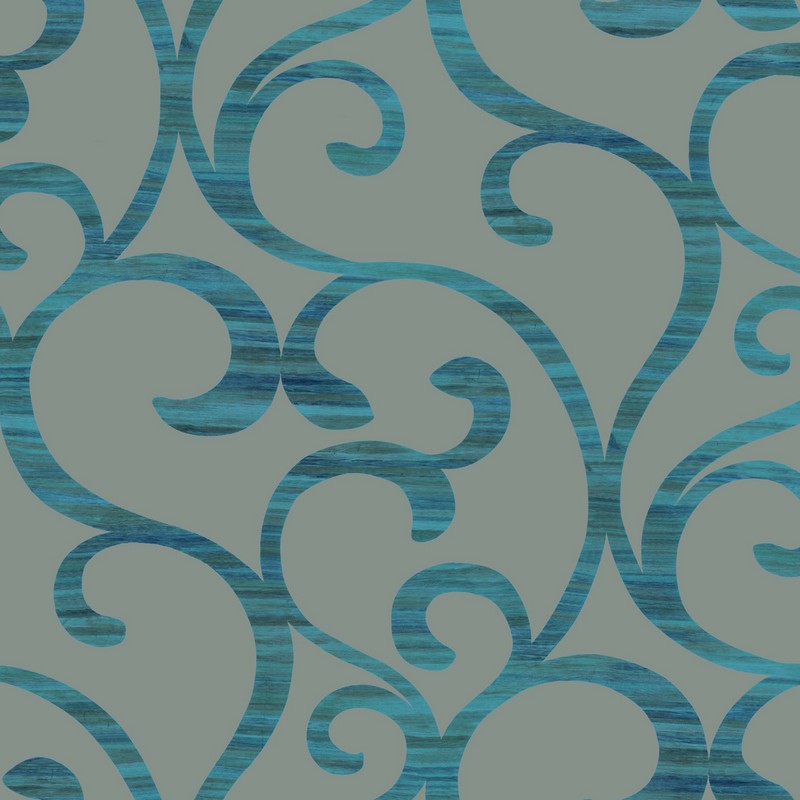 York Wallcovering Dazzling Coil Wallpaper grey with bright metallic teal, aqua and brown