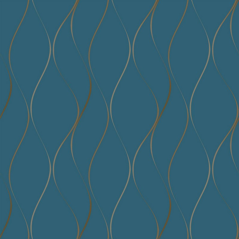 York Wallcovering Wavy Stripe Wallpaper blue metallic gold