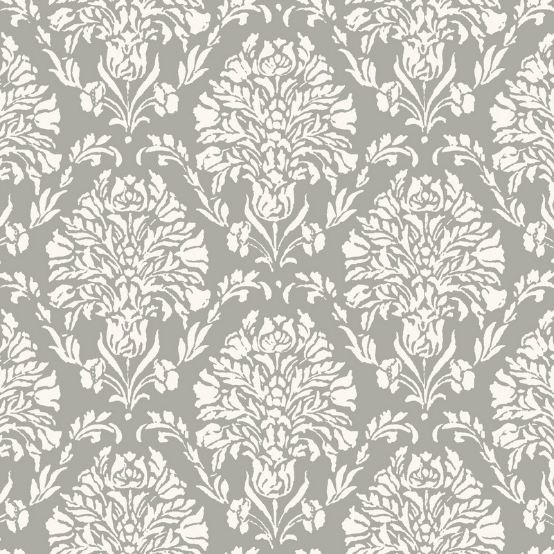 York Wallcovering Block Print Damask Wallpaper Dark Gray