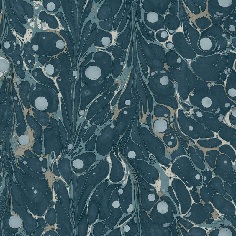 York Wallcovering Marbled Endpaper Wallpaper Navy