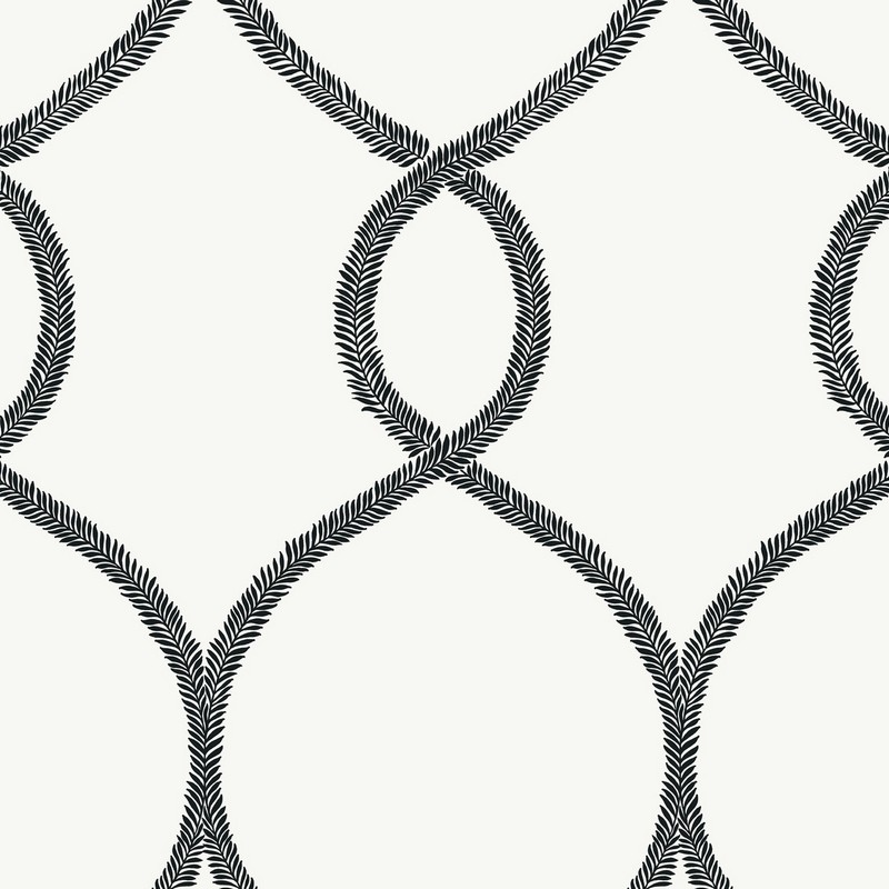 York Wallcovering Laurel Leaf Ogee Wallpaper Black