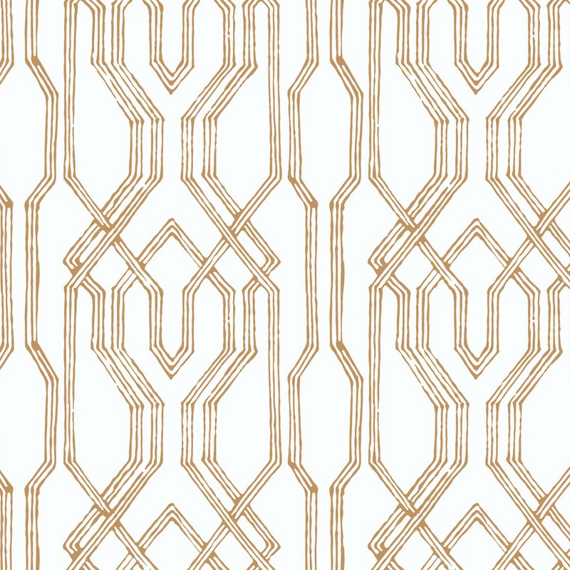 York Wallcovering Oriental Lattice Wallpaper White, Gold