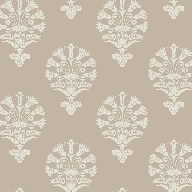 Stylized lotus medallions conjour up the fascinating artwork of ancient Egyptian architecture. The flowers of Luxor Wallpaper are presented in solid color against a subtly textured field that looks like handmade paper.