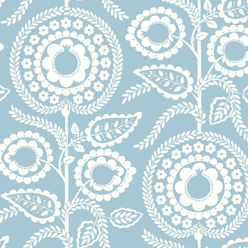 York Wallcovering Pomegranate Bloom Wallpaper Blue